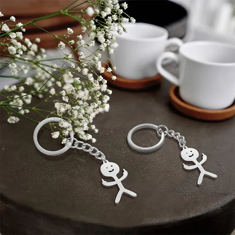 O chaveiro de aço inoxidável pode ser pendurado nas chaves do carro e nas chaves da porta. Não é apenas conveniente e rápido encontrar as teclas, mas também adiciona personalidade às teclas monótonas. Amarre-o na sua bolsa, carteira ou capa de telefone e ele instantaneamente deixa os acessórios comuns na moda, atraindo muita atenção quando você sai. O design do graffiti possui inerentemente um atributo moderno. Quer você seja um estudante ou um funcionário de escritório, você pode mostrar seu estilo único e se destacar facilmente na multidão. O estilo é fofo e prático, e o preço é acessível sem causar preocupação. Seja em aniversários, Dia de Ação de Graças, Natal, reuniões familiares ou como presente entre colegas, presenteá-lo é muito atencioso e também pode transmitir carinho e amizade mútuos. Um conjunto de três pode ser pendurado em chaves de diferentes usos, respectivamente, ou guardado como reserva para evitar o constrangimento de não conseguir encontrar um substituto quando o chaveiro estiver danificado.