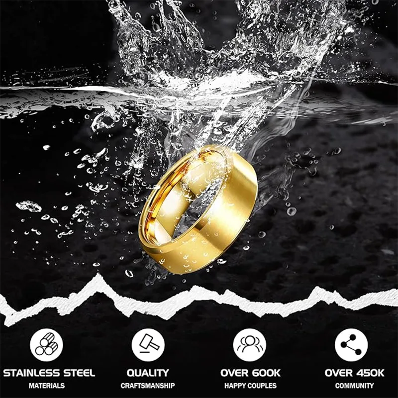 YD JEWEL é um fabricante e fornecedor profissional de joias na China. o anel masculino de aço inoxidável é feito de material 316L combinado com processo de revestimento a vácuo. O design da versão com 8 mm de largura combina textura e conforto. A aparência fosca é combinada com um anel interno liso, resistente ao desgaste e antidesbotamento.